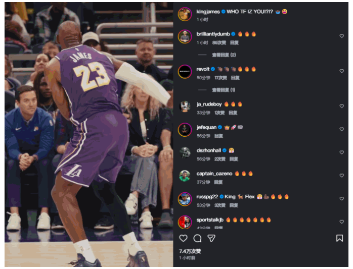 在洛杉矶湖人2027-28赛季的收官阶段,勒布朗·詹姆斯的个人社交账号,再次贡献了足以点燃全美篮球圈的“高光炸弹”。在湖人主场以118-102击败新奥尔良鹈鹕的收官战后,詹姆斯在Instagram